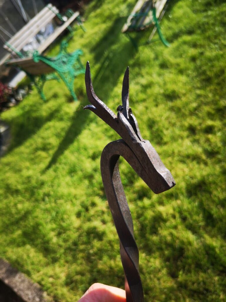 This rustic take on a classic fireside staple, the fire poker features an elegant hand-forged stag head and a classic tapered twist on the point.